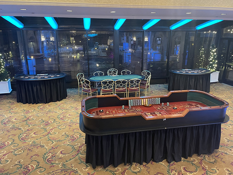 Whether it’s a charity fundraiser or dad’s birthday party, challenge your friends and go all in with packages ranging from a single table to the full casino floor experience complete with cashier booth, pit boss and customized funny money.